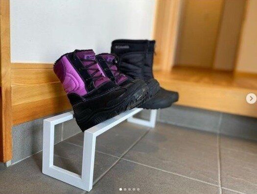 置くスペースによって幅を調節できるこちらの収縮ラックは、靴を一時的に収納する場所として重宝します。ブーツやなども置いて乾かすことができ、革靴をお手入れする際にも置くことができます。使わないときは棚にしまっておけるのが便利ですね。