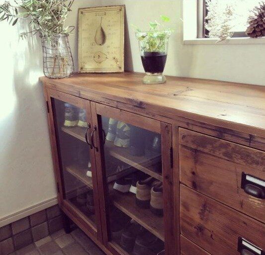 こちらはキャビネットを靴箱として利用している例です。引き出しがついているため、手袋や虫よけ、アロマなどいろいろなものを収納することができて便利ですね。