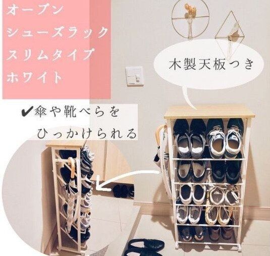 そもそも靴箱自体があまり大きくない…という家庭には、玄関におけるシューズラックを導入してみるのもおすすめ。こちらはキャンドゥで販売されている「シューズラック4段」(550円)です。ふだんからよく使う通勤&通学靴やサンダルなどは、シューズラックに置いておくとサッと取り出すことができて便利ですよ。