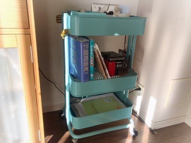 子どもの勉強道具は「必要最低限で一か所にまとめる」収納ですっきりさせているサンキュ!STYLEライター山名美穂さん。何が本当に必要かを考え、キッチンワゴンに収納しているようです。しかし、保存か破棄かすぐに決められないときのために、仮置きスペースをつくって気持ちに余裕をもたせることも大切だといいます。