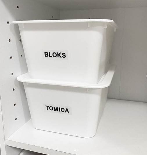 出したものは、出した場所にもどす――というシンプルな収納ルールですが、ごちゃごちゃっと出してしまったおもちゃでそれを実践するのは至難の業。でも、ケースなどにあらかじめラベリングしておけば、子どもでも迷わずもどせるかも!