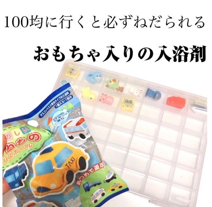 子どもたちみんな大好きなバスボール。お風呂に入れるのが楽しくて、中からおもちゃもでてくるので子どもたちは大好きですが、その中身のおもちゃはとっても小さい!おもちゃ箱に入れるとすぐになくなってしまいますよね。そんなバスボールのおもちゃも、セリアの小物ケースにまとめて収納すれば行方不明になってしまう心配もありません。仕切りのサイズもちょうどよく、四隅に凹凸があるので重ねて収納することもできます。ついつい増えがちなこまかいおもちゃも小物ケースがあれば安心ですね。
