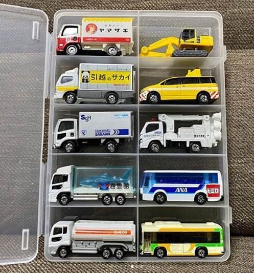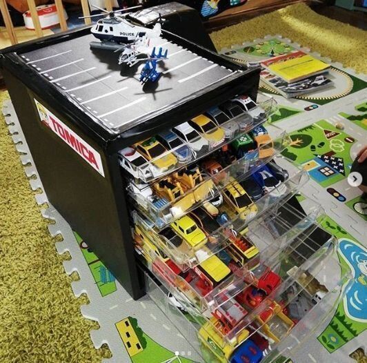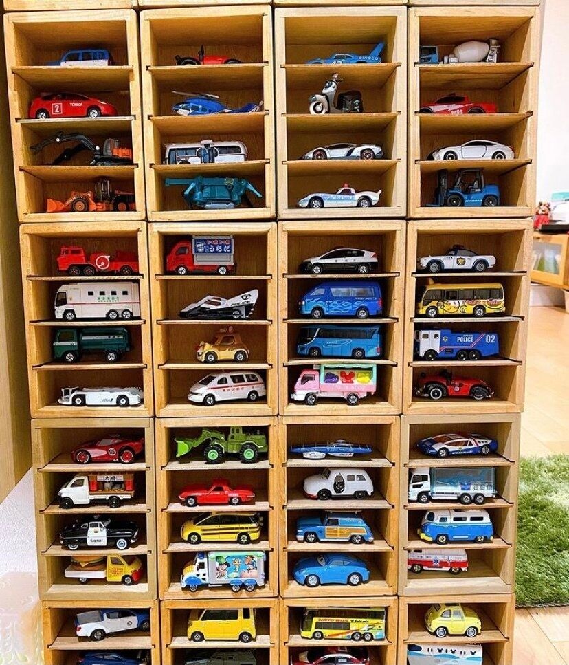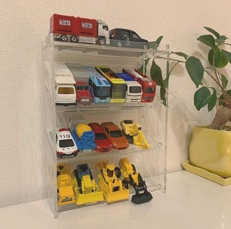 男の子が大好きなトミカ。どんどん増えていき収納に困りますよね。ただおもちゃ箱に収納するのではなく、セリアの小物入れを使えば、見ていて楽しいトミカの収納ができます。こちらのアイテムはトミカの大きさにちょうどよく、並べて収納できるので、あの車はどこ?とおもちゃ箱から探す手間も省けます。大人も子どもも見ていて楽しくなるトミカの収納方法でした。