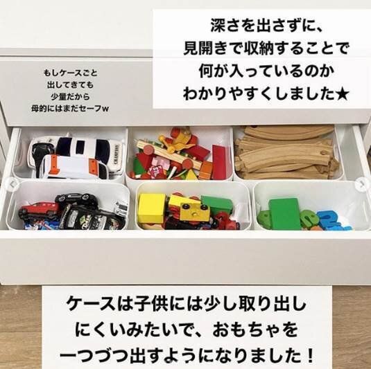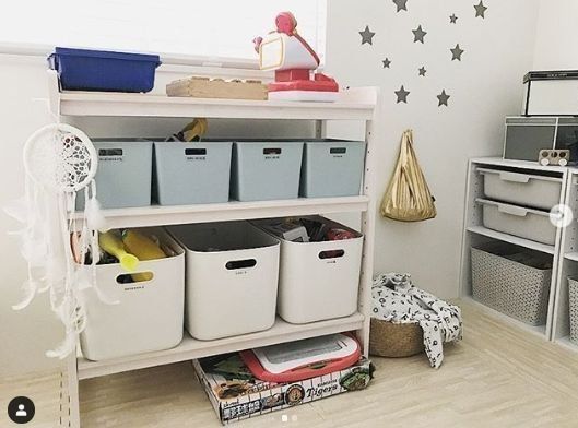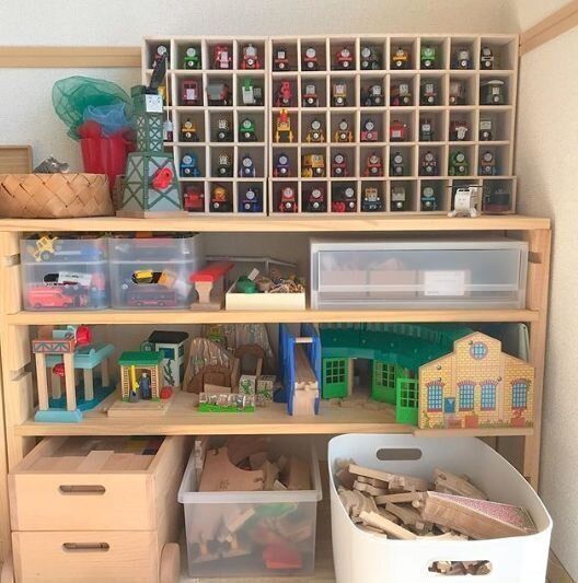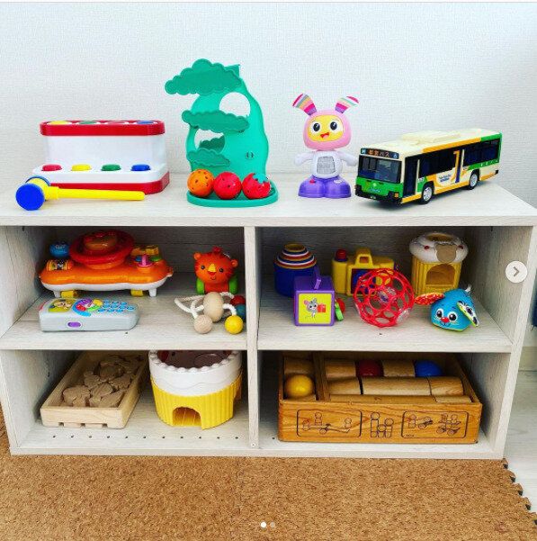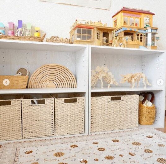 ここからは、インスタグラムで見つけた、すてきなおもちゃ収納実例を一挙公開!どれもマネしたい、タメになるものばかり。ぜひ参考にしてみてくださいね。