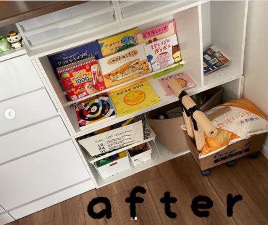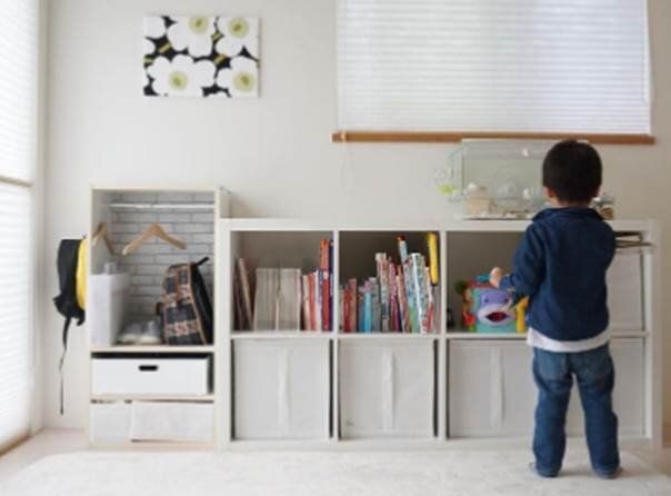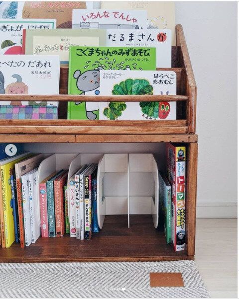 こちらの絵本収納は、「うちの子、全然本に興味を持ってくれない」というお悩みを解決してくれる優秀アイデア。専用の絵本棚を使って、絵本の表紙が見えるように、そして子どもが取り出しやすいようにぎゅうぎゅうに詰め込みすぎない。これがポイントなんですね。
