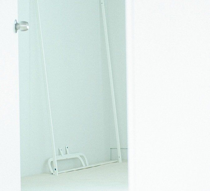 インテリアになじみやすい、シンプルでスタイリッシュなデザイン。ワンピースやコート掛けとしてはもちろん、洗濯物の室内干しにも使えます。バーの両サイドには、ストッパーがついていて、滑り落ちを防止してくれます。