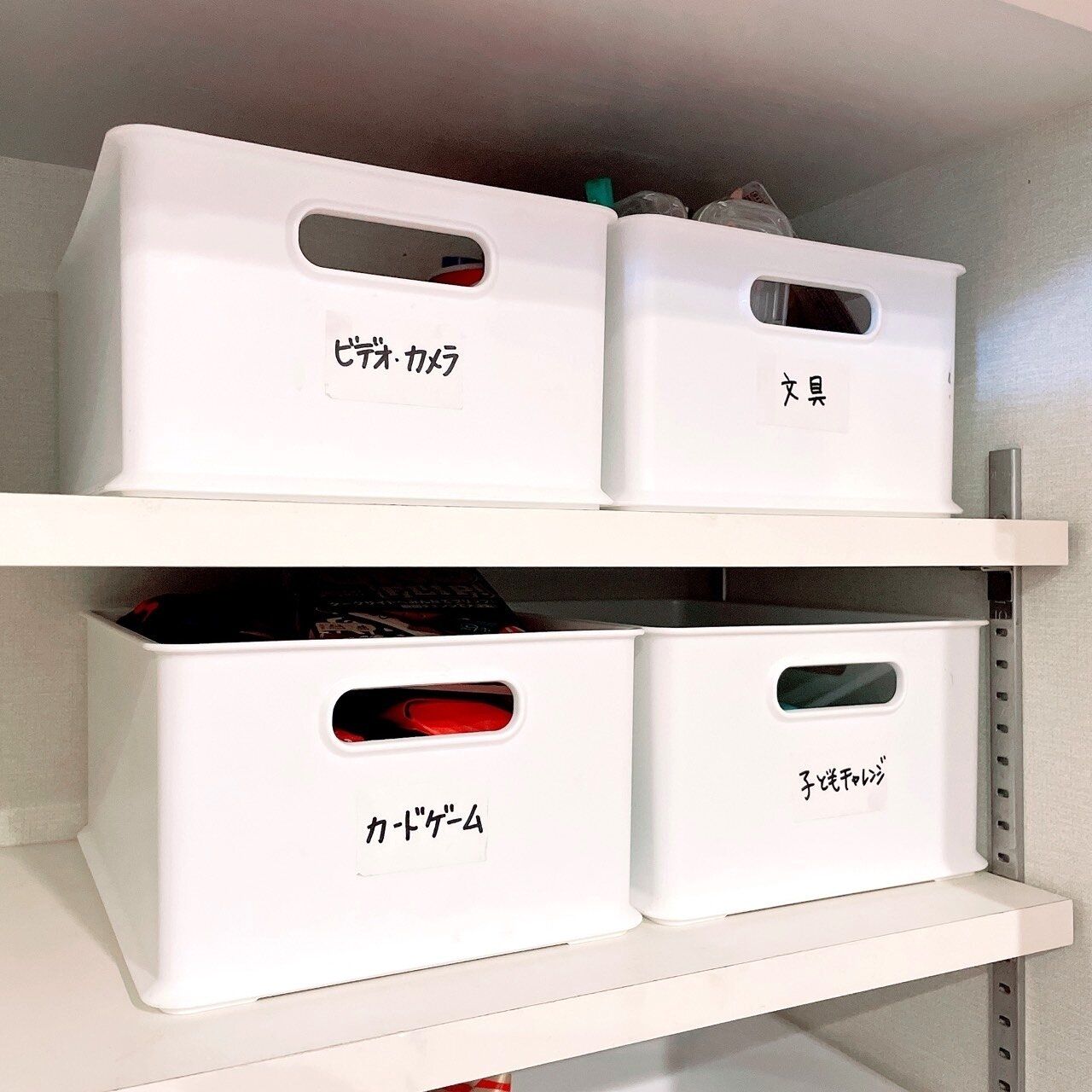隠す収納は分かりにくいので、例えば、中の見えない収納ボックスではなく透明なボックスにしたり、見えやすい位置にラベリングをして、中に何が収納されているか分かるように工夫してくださいね。