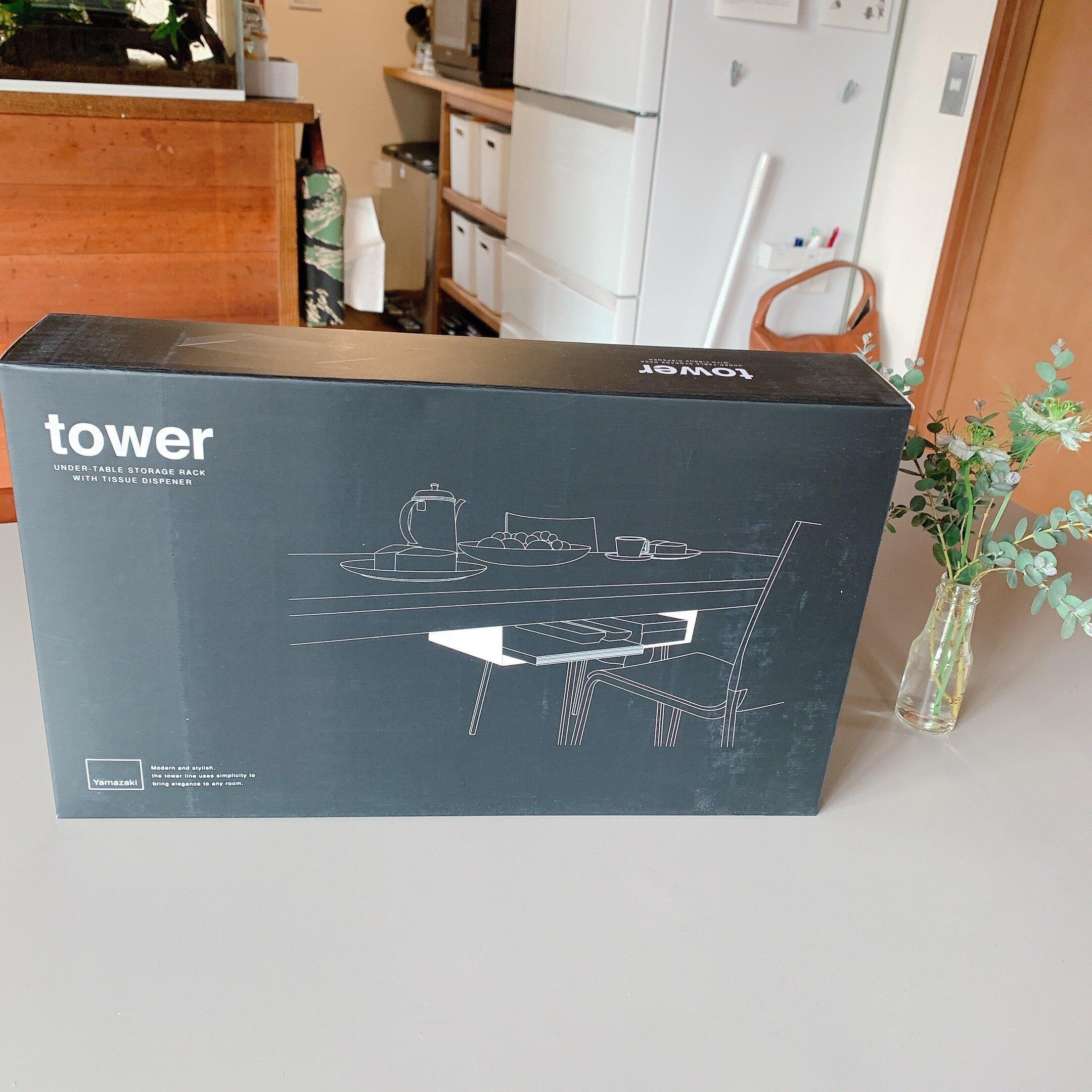 それが山崎実業towerシリーズの「テーブル下収納ラック」。テーブルの下に取り付けられる収納ラックです。