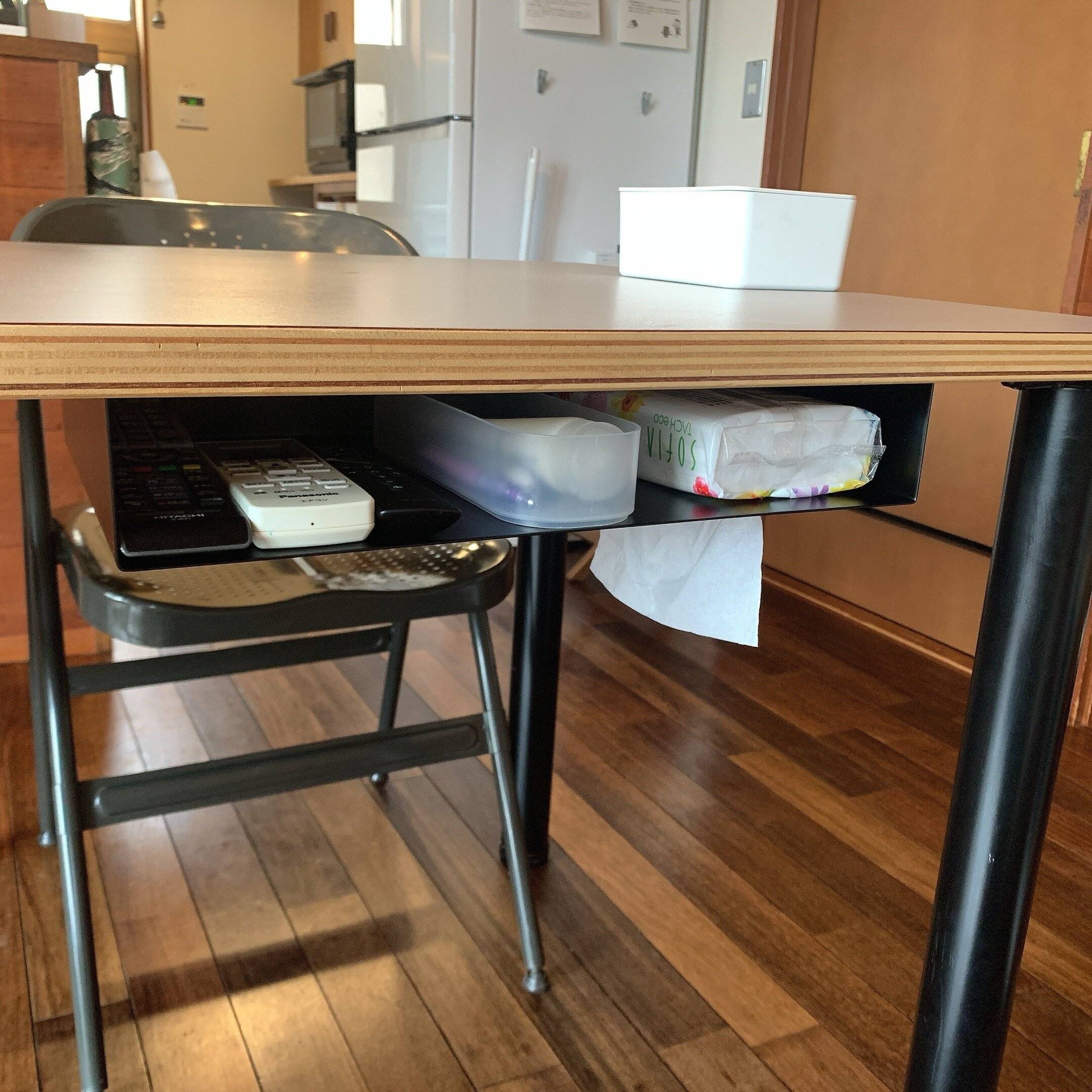 サイドテーブルとして活躍してくれるこの「テーブル下収納ラック」。