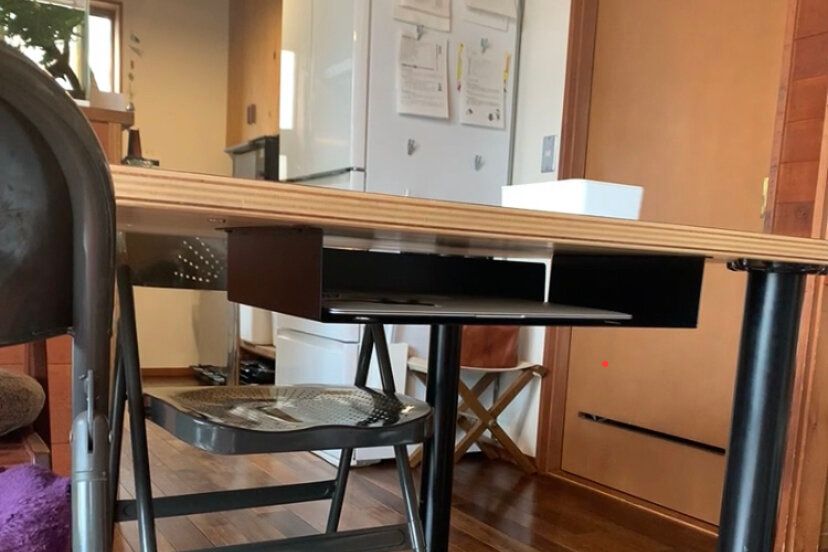 収納ラックの高さも7cmと薄めなので、テーブルの椅子に座っても脚に当たることはありません。