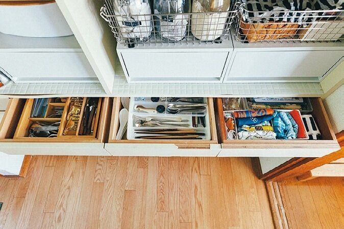 - 出入り口から手が届きやすい引き出しを箸類の指定席に
