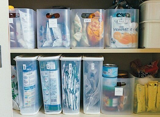 - 食品ストックは、ラベリングでだれでもすぐわかるように