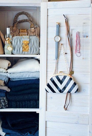 ワードローブに服やカバンを、扉の裏にアクセサリーをつるせば、コーディネートもラクチン。