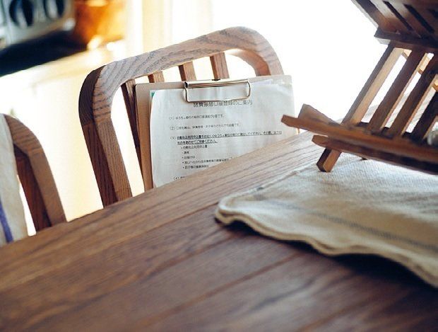 年度初めは子ども3人が持ち帰るプリントが膨大なので確認が大変。そこで、提出期限1週間以内の物はクリップボードにはさんで食卓のいすへ。「座るたびに目につくので、うっかり忘れが防げます」。