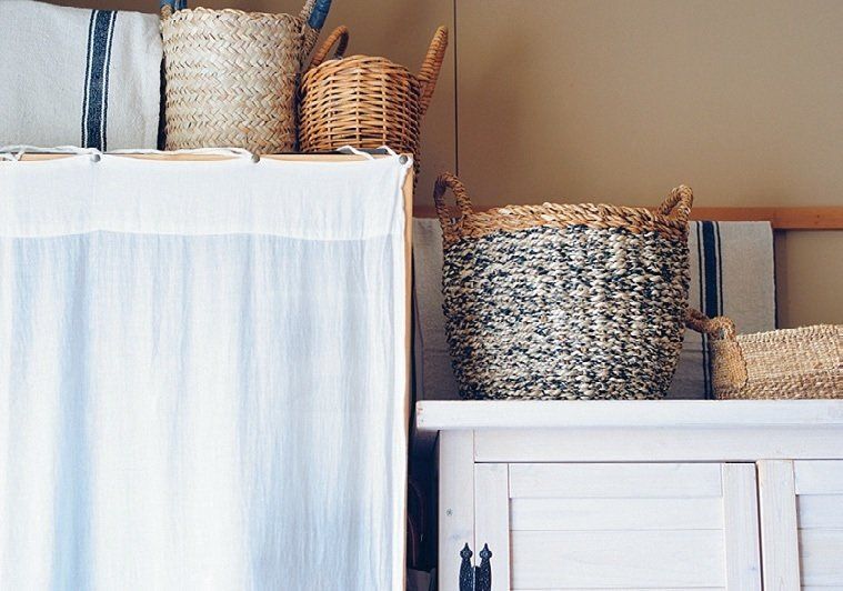 家が狭い分、物があふれてしまいがちだけど、布で隠したりカゴに収納すれば色みもそろってスッキリ。新しい環境に慣れず疲れて帰っても、ホッとひと息つける空間に。