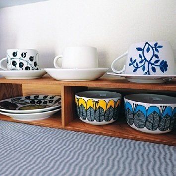 お皿やマグカップ、グラスの見せる収納にも!ラックの中には16.5cmサイズの丸皿が入ります。ラックの上もフル活用。