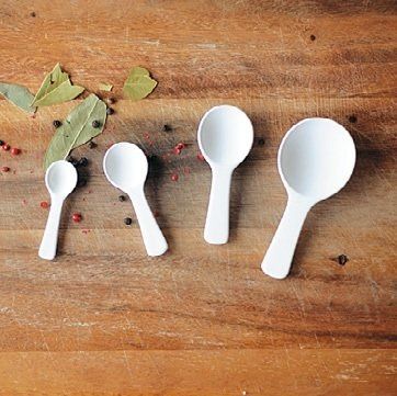 (左から)「珪藻土スプーン」1.25ml ¥181、2.5ml ¥227、5ml ¥272、15ml ¥363/ニトリ ※砂糖には使えません