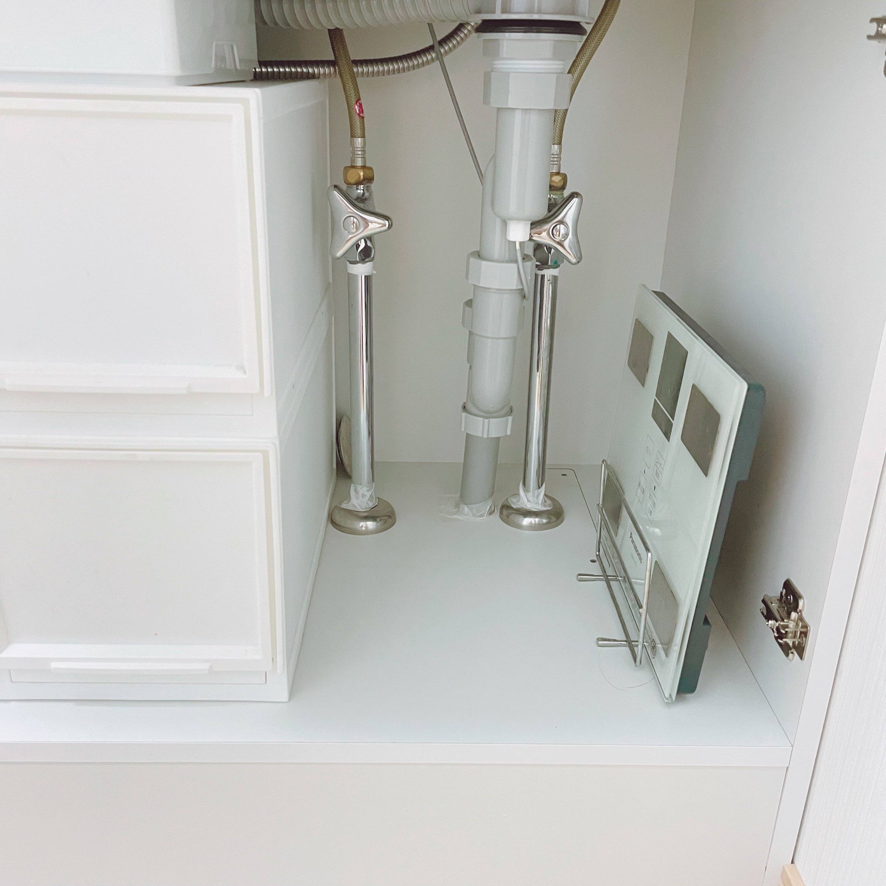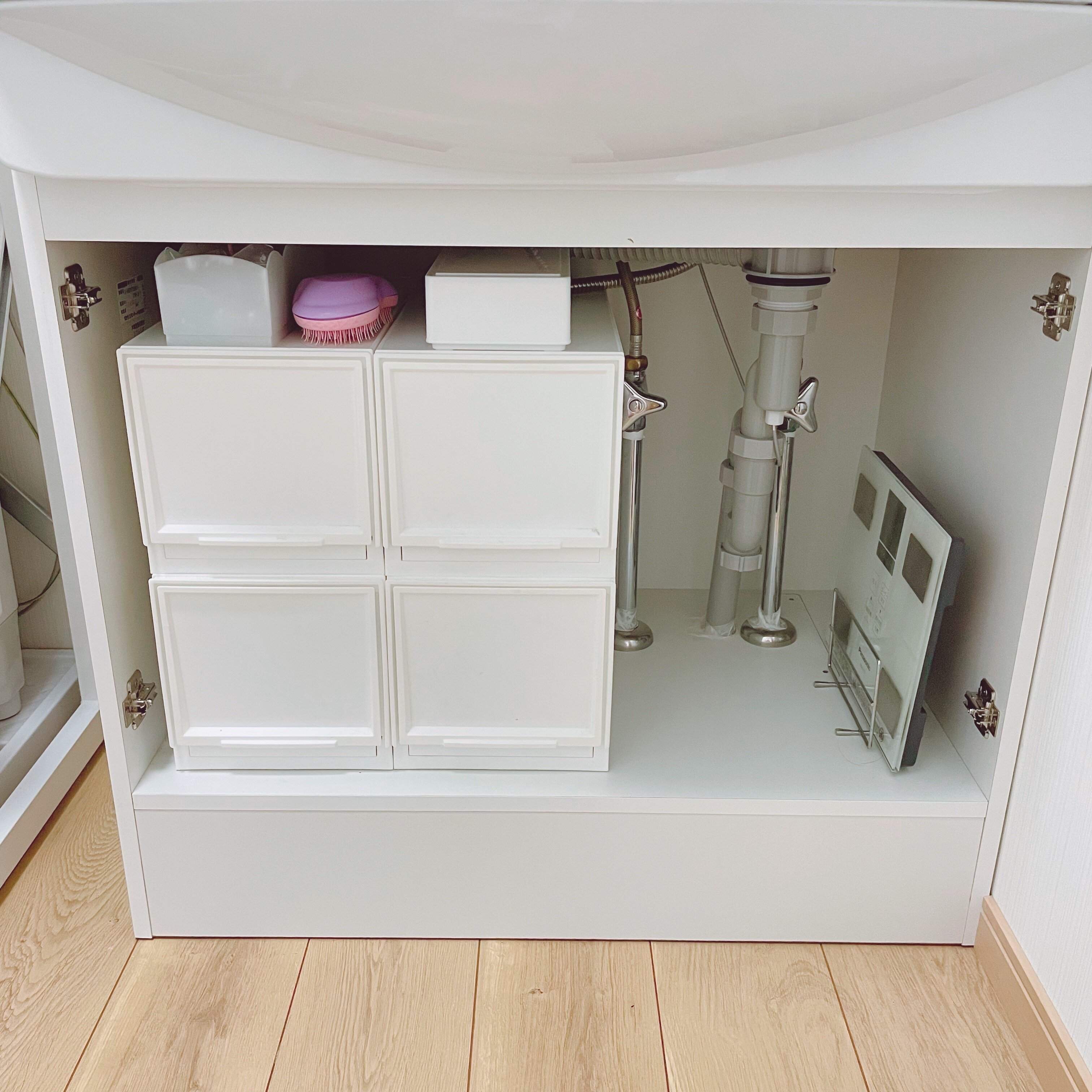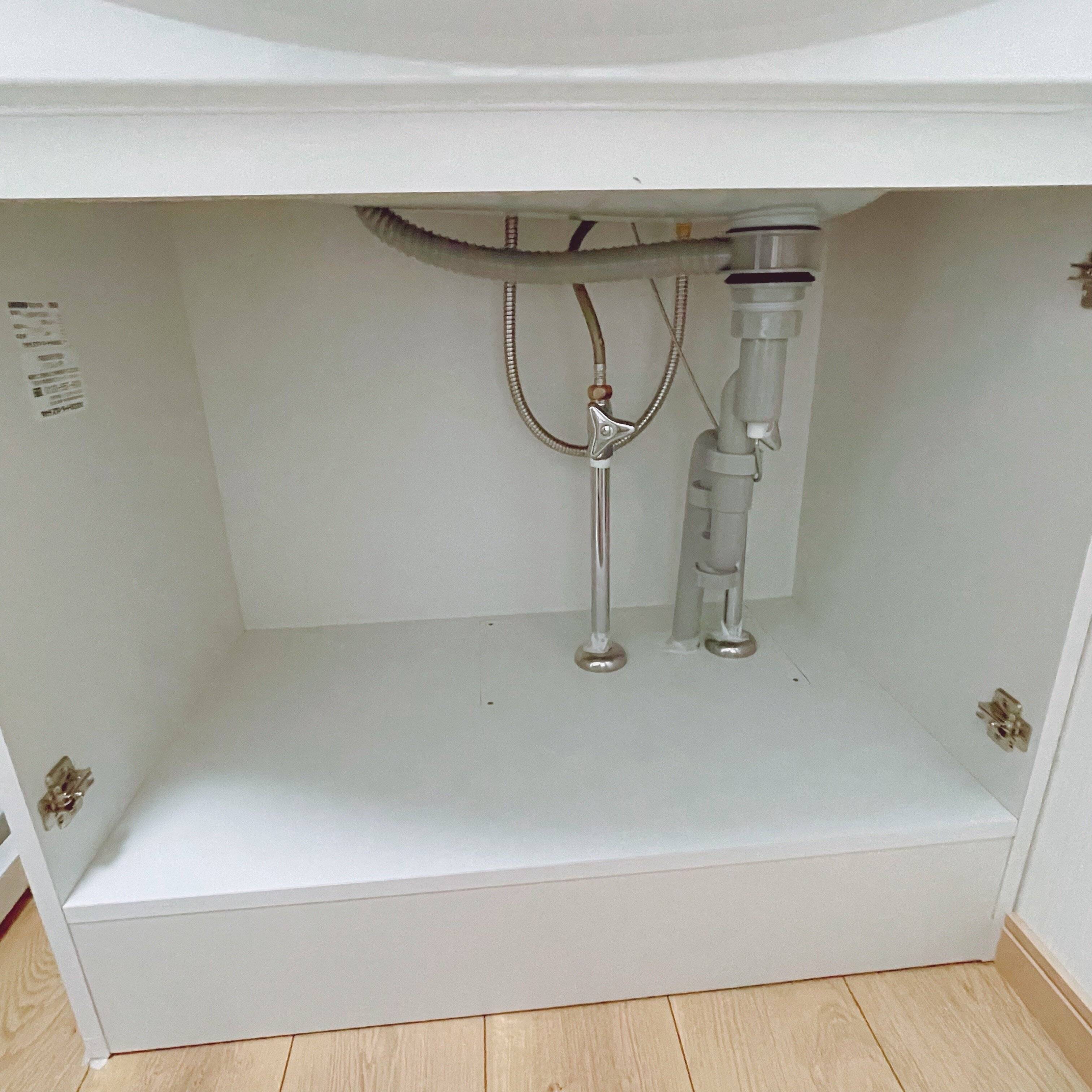 扉を外しただけで、たくさんのメリットを感じることができます。洗面台下収納のごちゃつきでお悩みの方は、1度とってみることをオススメします。