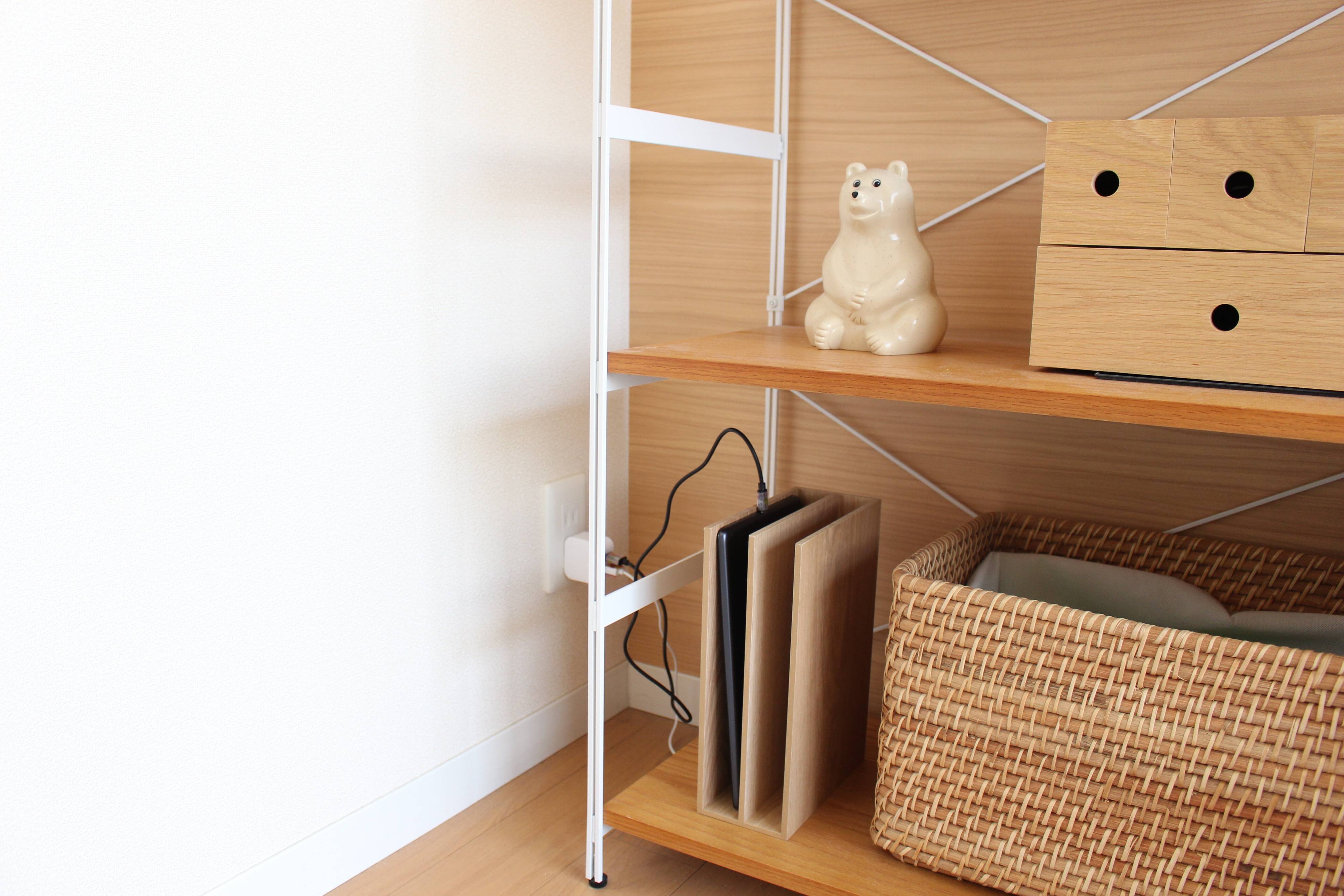 コンセントの近くに置くことで、使い終わったらここに戻して必ず充電するよう、家族の中でルールを決めました。