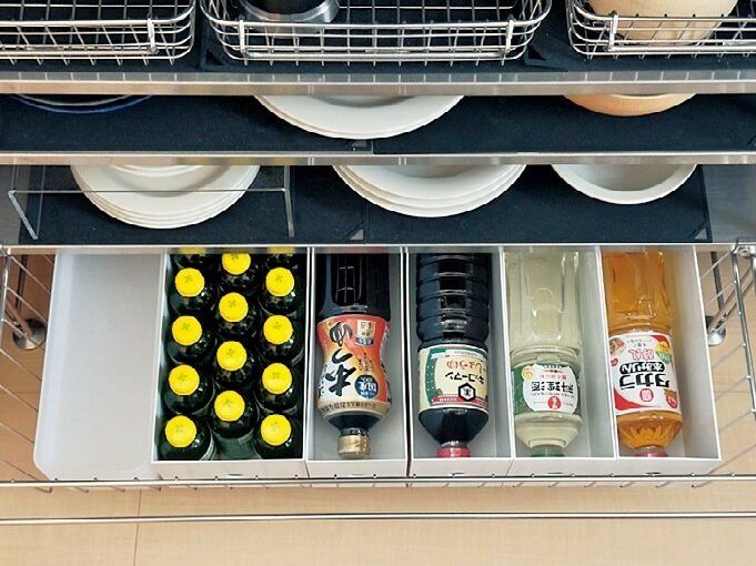 ●キッチンでは、ファイルボックスでストック品を仕分け