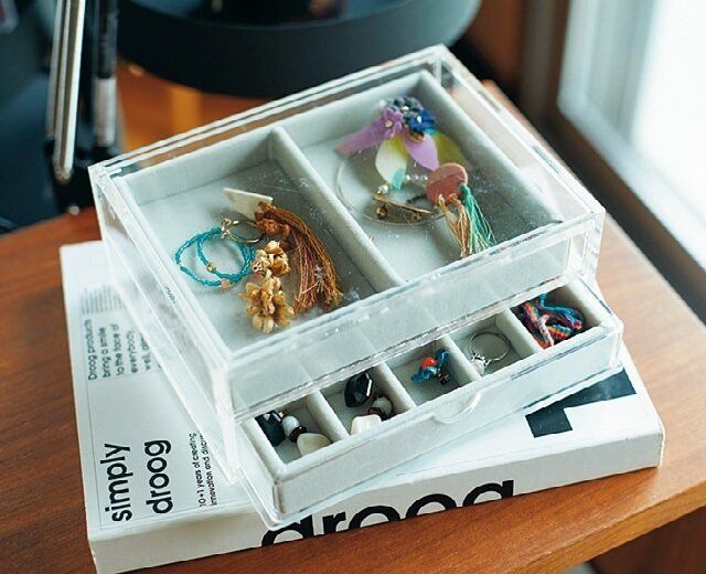 アクセサリーが平置き収納できて、出し入れもラク。別売りのベロアケースを併用。