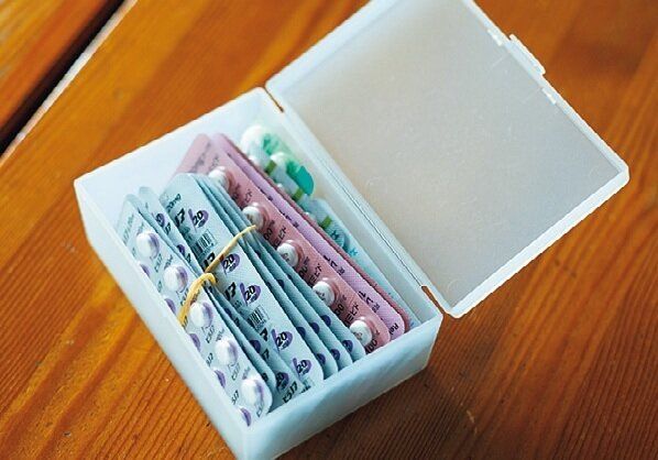 今未使用の薬は棚の中。今使用中の薬は、ふた付きケースにまとめてすぐ取れる場所に。
