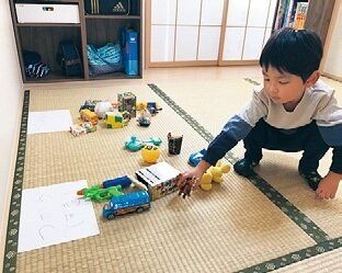 「5歳でも『使う物(好き)・使わない物(あげる)』でおもちゃを分別できてビックリ!私1人で整理したときより物が減りました(笑)。今後は息子におもちゃの管理をまかせます」。