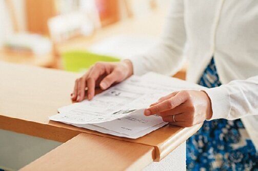 学校から帰ったら、プリント類はカウンターの端に置くのがお約束。ママがチェックして、保管が必要な物はカウンター奥の置き場(1人1ファイル)に移動。