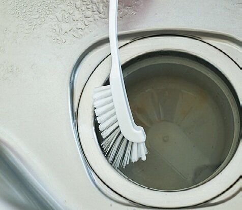 - 1 アルカリ電解水をかけて排水口ブラシで洗う