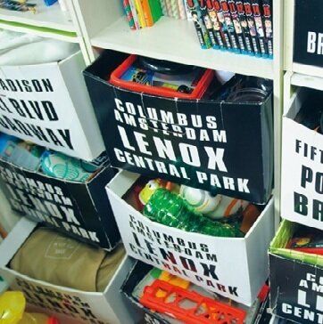 ボロボロになった段ボールの箱は、新しく買い替えることに。棚にピッタリのサイズの箱ではなく、少し小さくてすき間を空かせるとがぜん探しやすく。今回はニトリとセリアのものを購入。
