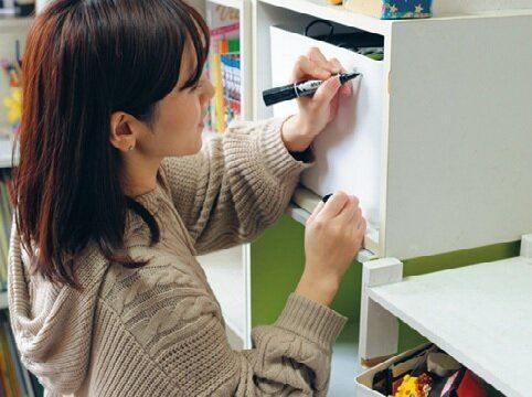 細かく分類するとハードルが上がるので、カテゴリー分けはざっくりでOK!ラべリングすれば中身がひと目でわかり、迷わず元に戻せます。