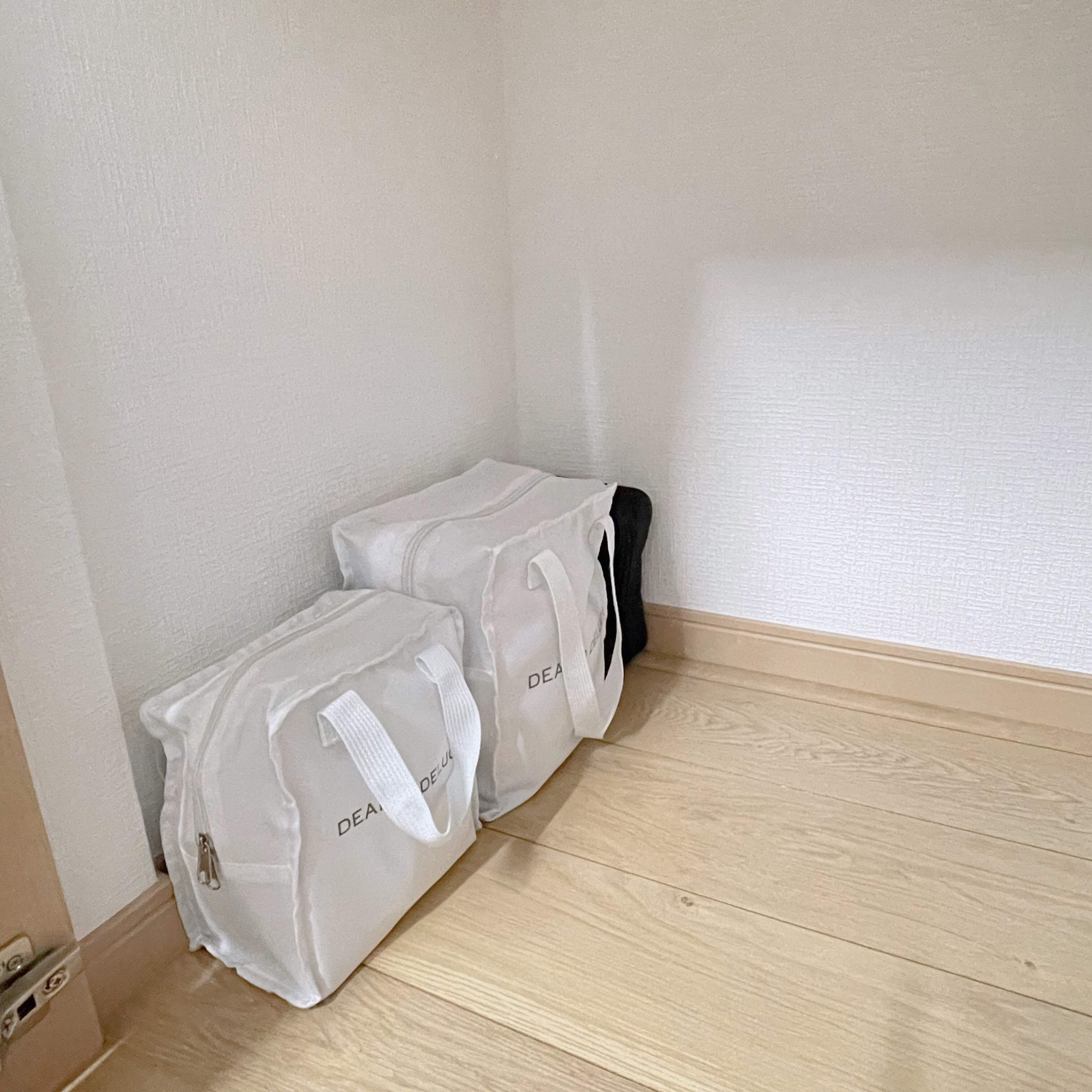 3段棚に置くものは「毎日使う物」だけに絞り、頻度が低いものは小さめバッグにまとめて、別場所で保管します。