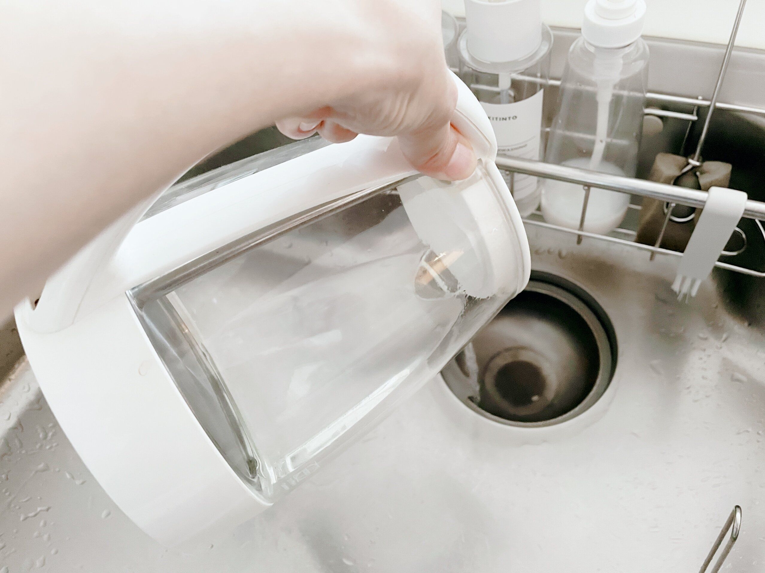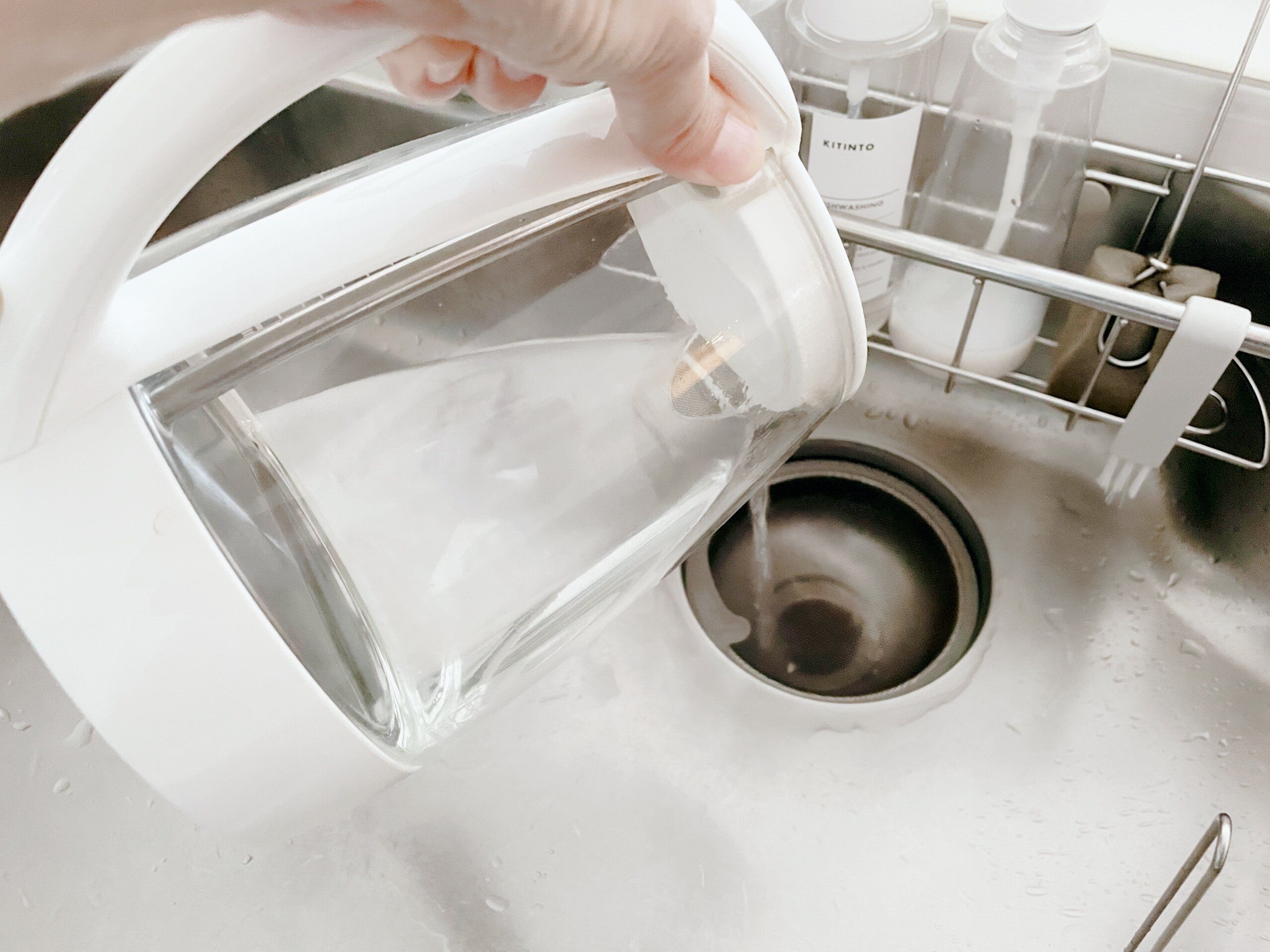 そこで朝紅茶を飲んだ後キッチンリセットをする際に、電気ケトルに余分に沸かして残ったお湯を排水口に流すことにしました。ポイントは排水パイプを傷めないように沸かしたばかりの熱湯でないことと、ある程度の温度を保っていること。余ったお湯を流すだけなので簡単に習慣化することができました。