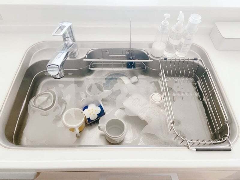 毎朝低温のお湯を流すようになったので頻度を下げ、2週間〜1カ月に1回、週末掃除の中に組み入れているのがシンクのオキシ漬け。シンクも綺麗になり、茶渋などが気になっているカップや水筒パーツなども一緒に綺麗にできるのでまさに一石二鳥のキッチン掃除!