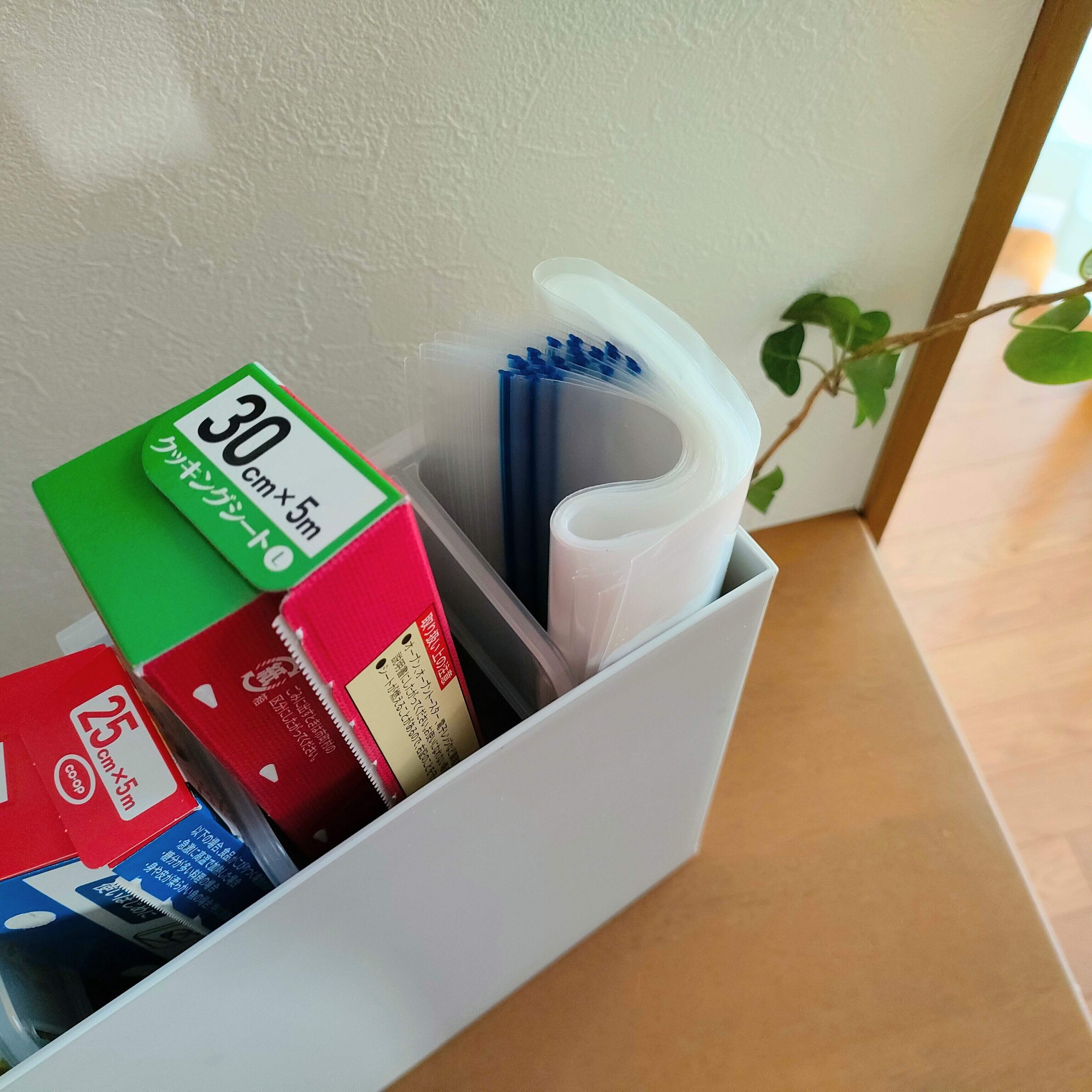 冷蔵庫のドアポケット用の商品ですが、上記のファイルボックスにちょうどいいサイズなので購入しました。