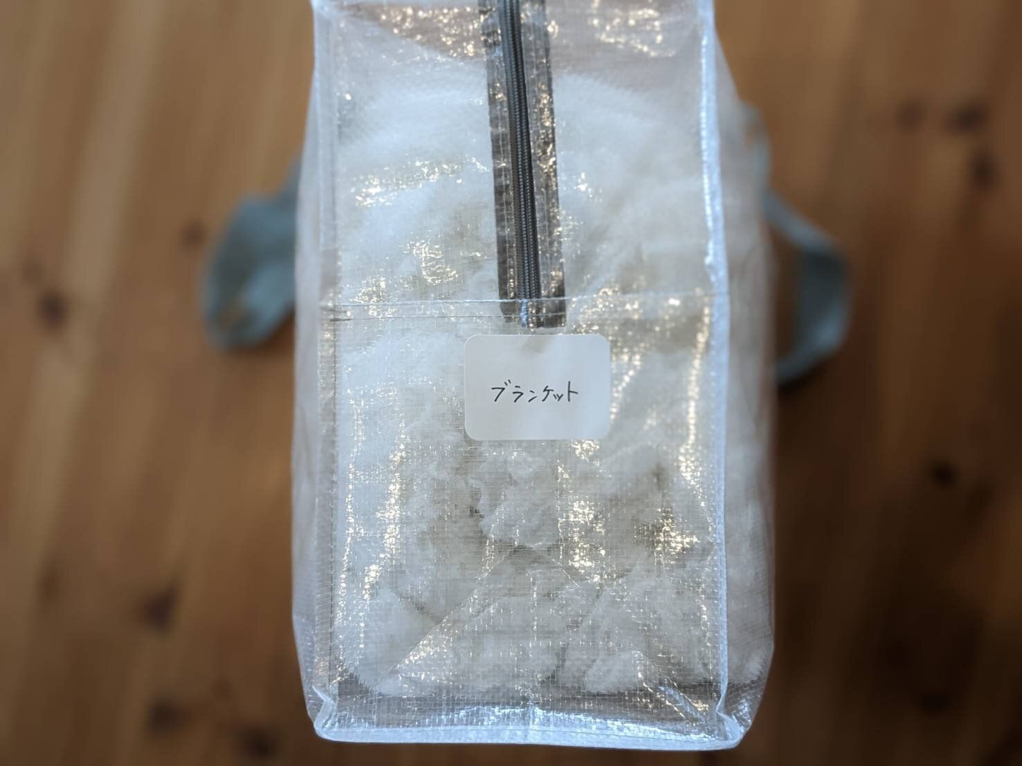 夏の間使っていた「ブランケット」を収納しているこのバッグ。実は、ズボラさんにこそオススメしたいラベリングの秘密が隠されています。