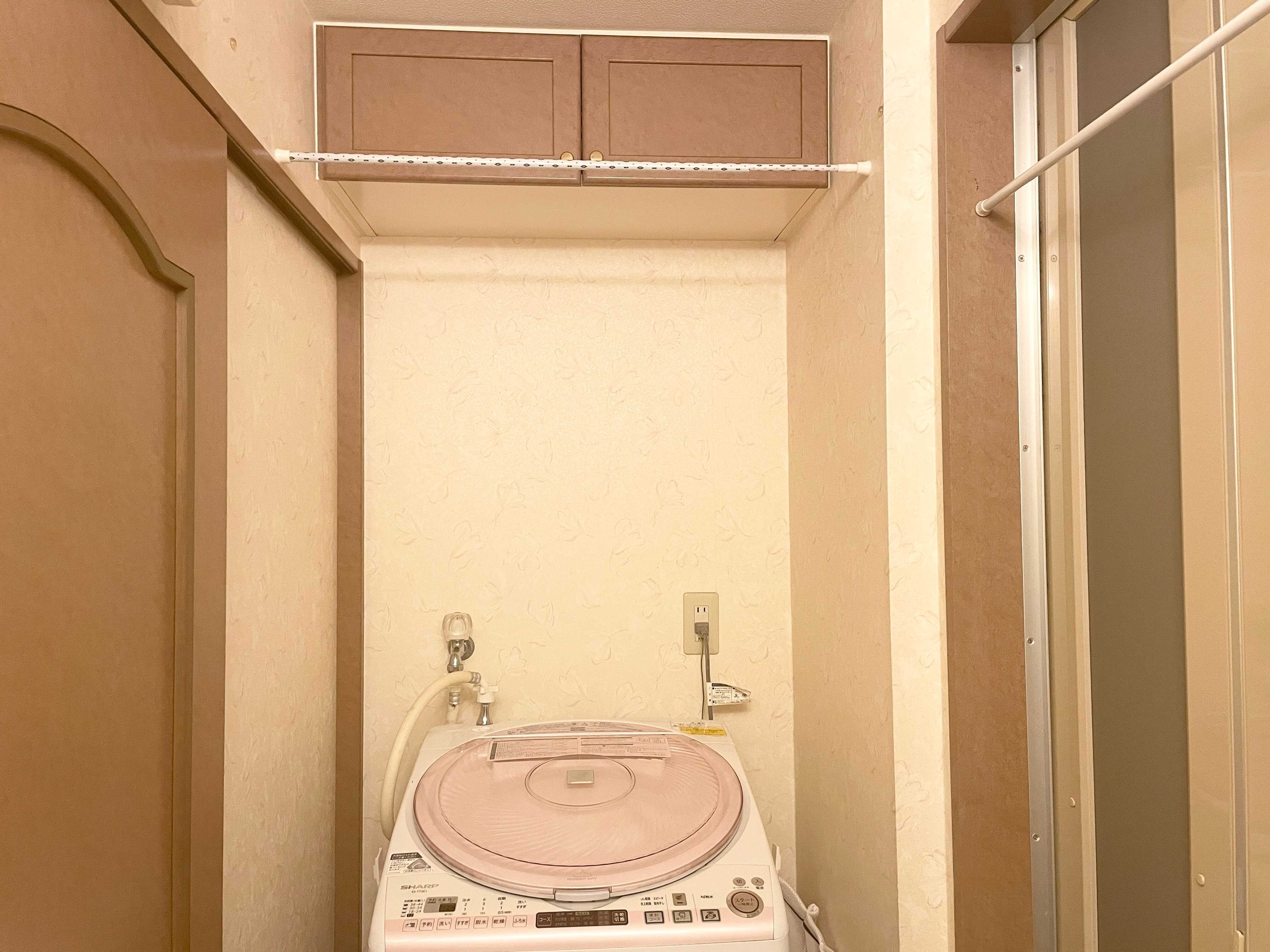 つっぱり棒を付けたら思いのほか便利だった場所は、「脱衣所にある洗濯機の上」です。