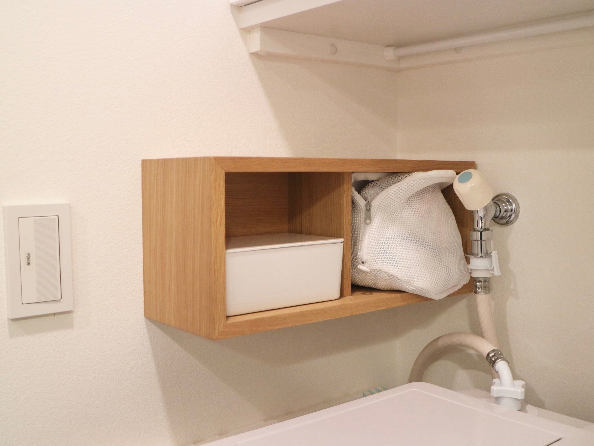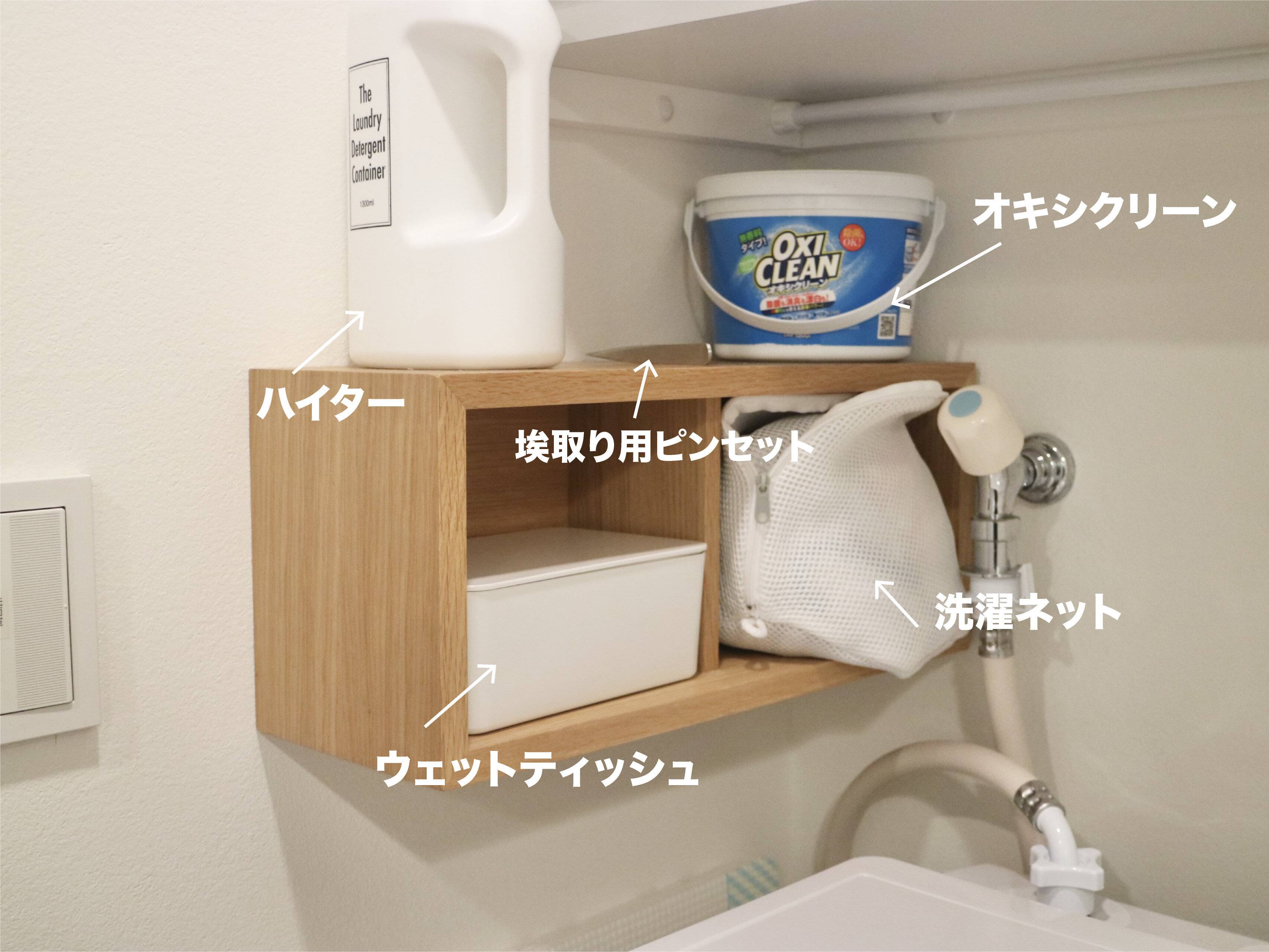 洗濯機をつかうときに必要なものはすべてこの棚に収納。