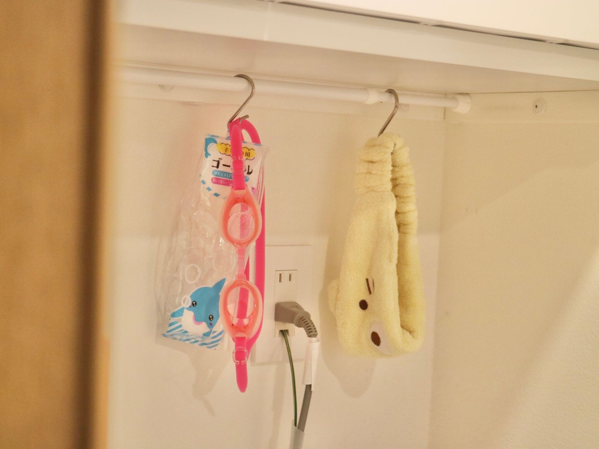 わが家では、洗顔時のターバンや、習い事で毎週つかう水泳のゴーグルを乾かすときなど、「ちょっとかけておきたい」を叶えてくれています。