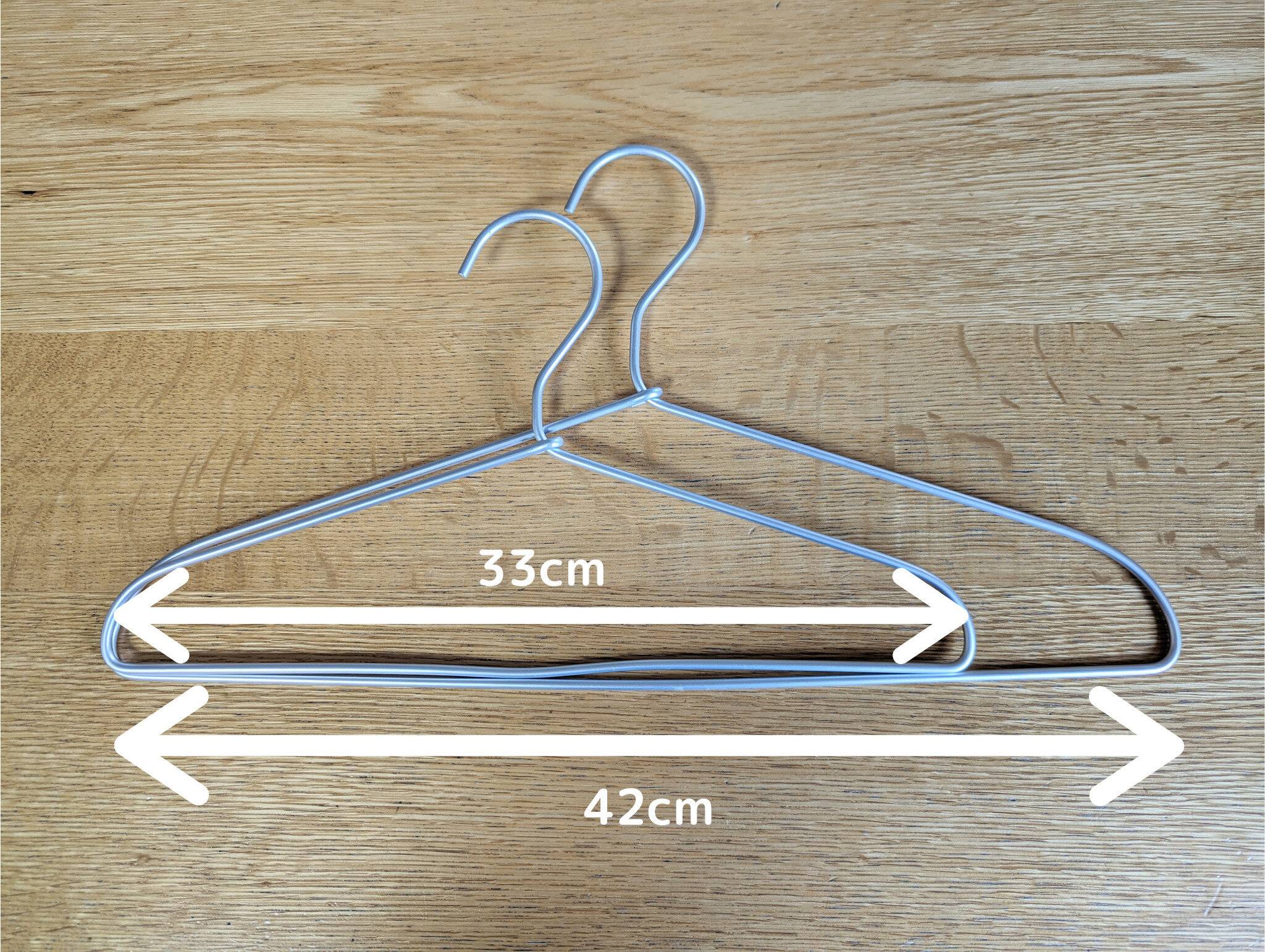 大人用には42cm幅(3本組・390円)、子ども用には33cm幅(3本組・350円)がぴったり。カラフルな子ども用ハンガーではなく、大人と同じものを選ぶと見た目がそろってすっきり見えます。