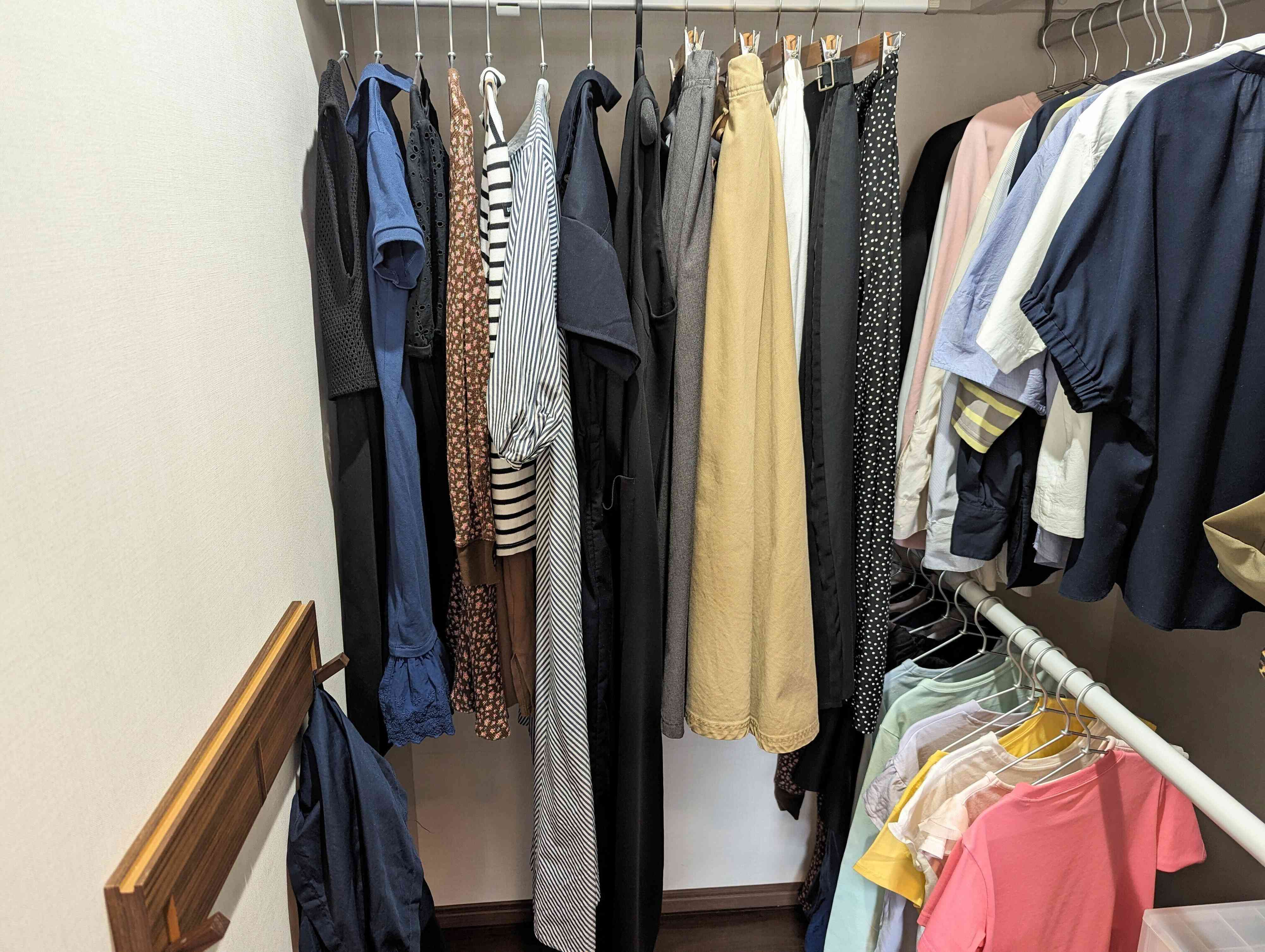 長女とわたしのワンピースなど丈の長いものは、つっぱり棒のない側に