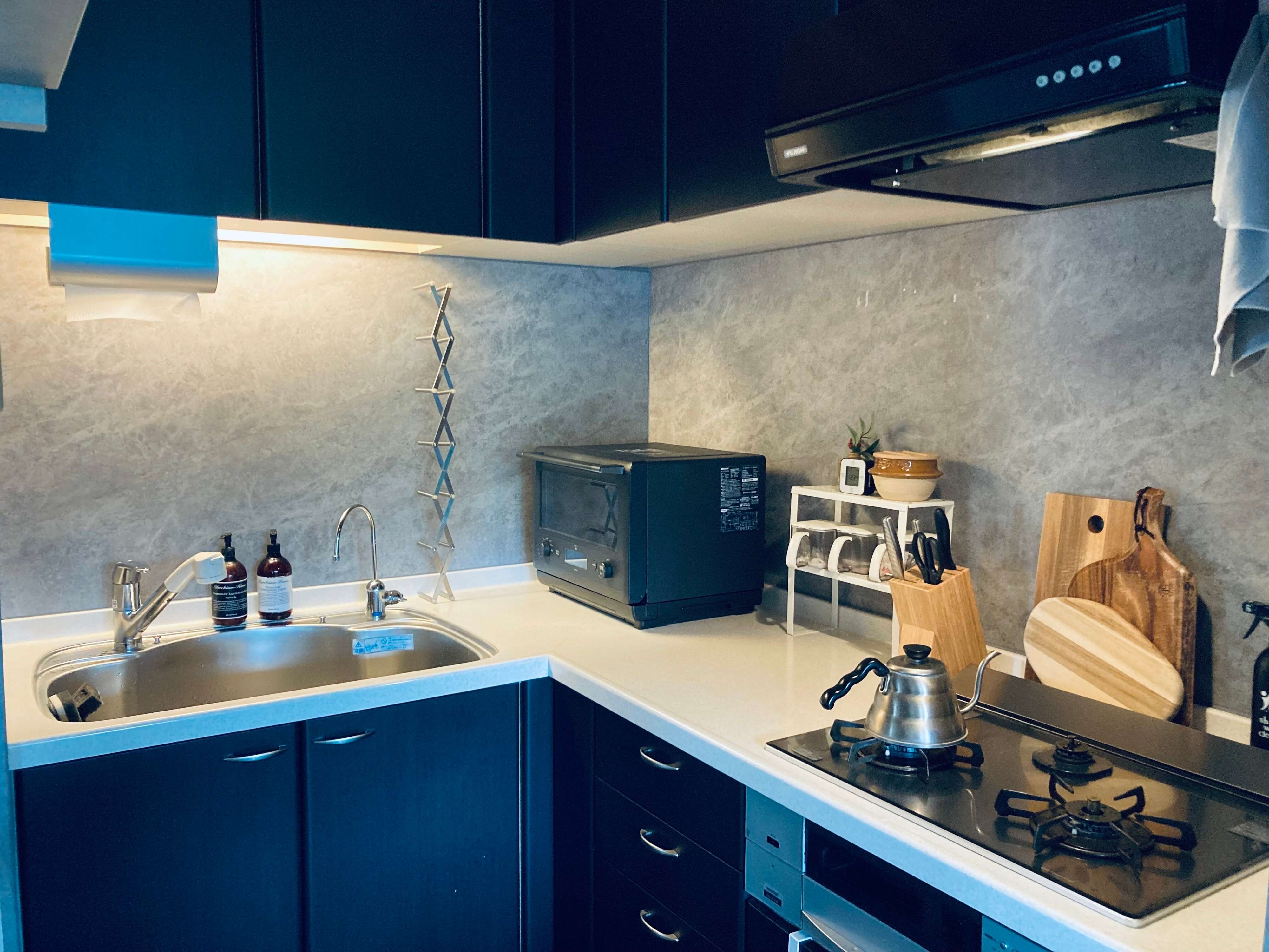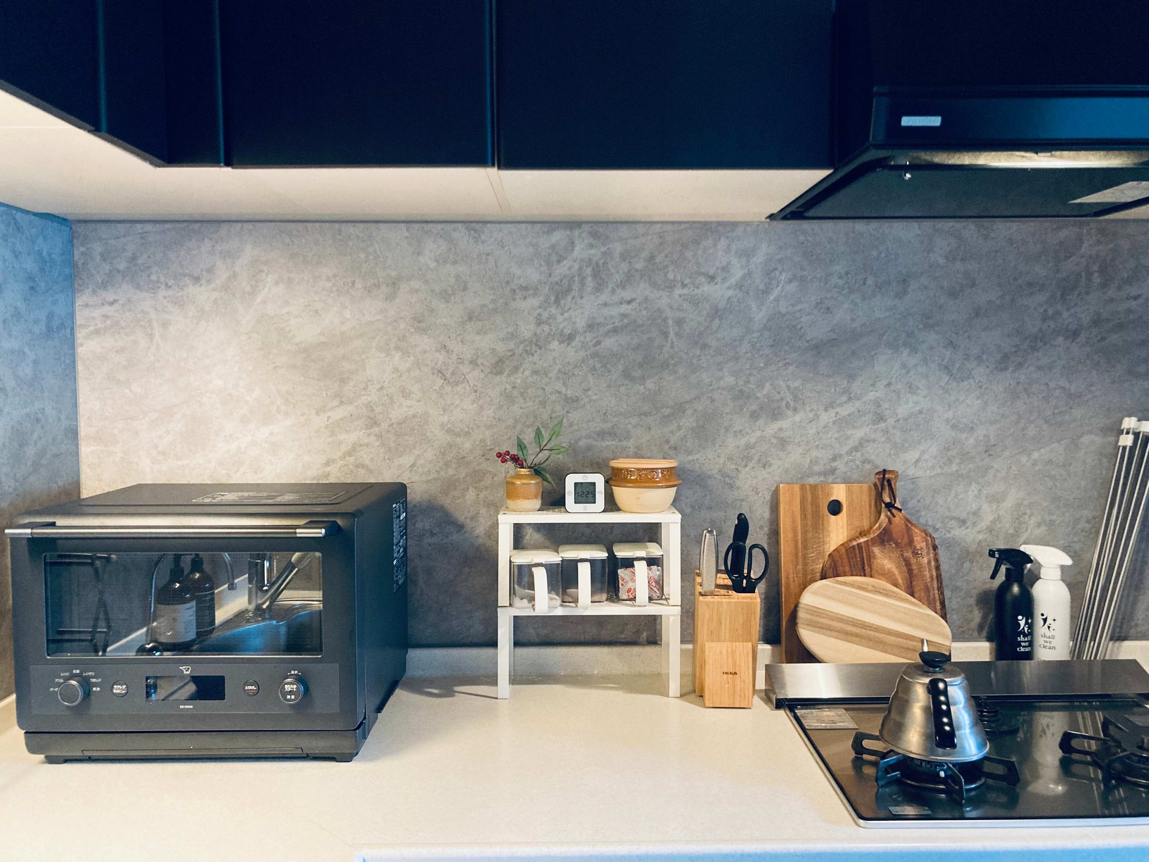 筆者は、リフォーム時、作業スペースの壁面に「キッチンパネル」を採用しました。フラットな素材で、お手入れがしやすいのが魅力です。
