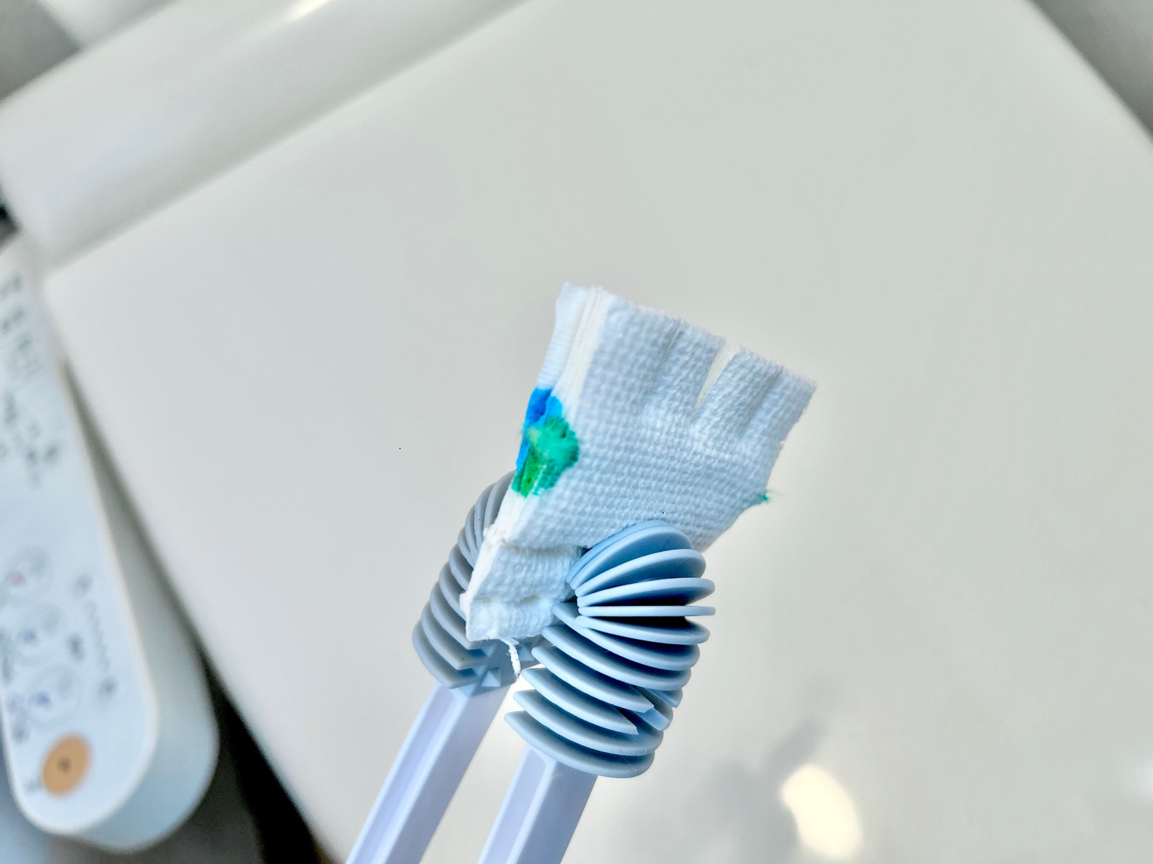 トングを使えば、サッとトイレットペーパーをつかんで汚れを拭き取れるので、「子どもがトイレを汚したときも、ストレスなくサッと掃除できる!」と感じています。