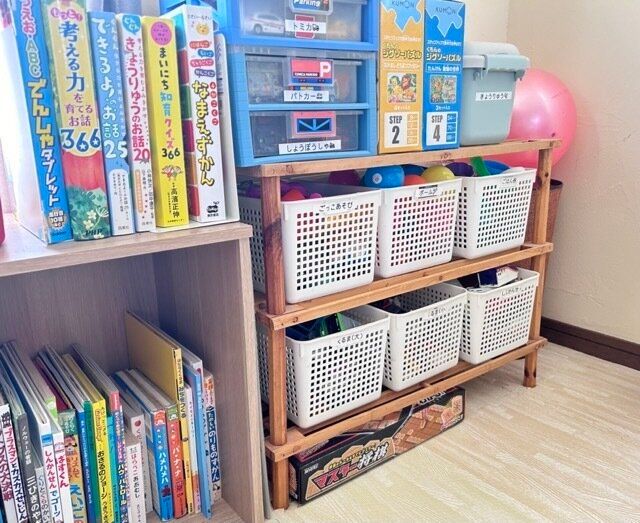 50個の「ネームバスケット」を揃えた私のやり方は極端ですが、合計5,400円程度。それで家中の収納がスッキリして、子どもの成長に合わせて収納を変えたり、引っ越しにも柔軟に対応できるので、まだ子どもが小さくてドタバタな今の暮らしにはちょうど良いと考えています。