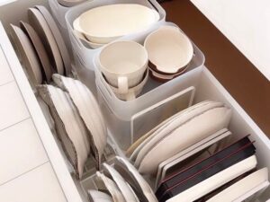 あらかじめセットした状態で収納しておけば、扉や引き出しを開けたら片手で取ってすぐに使えるので、動作が少なくなり作業がスムーズです。