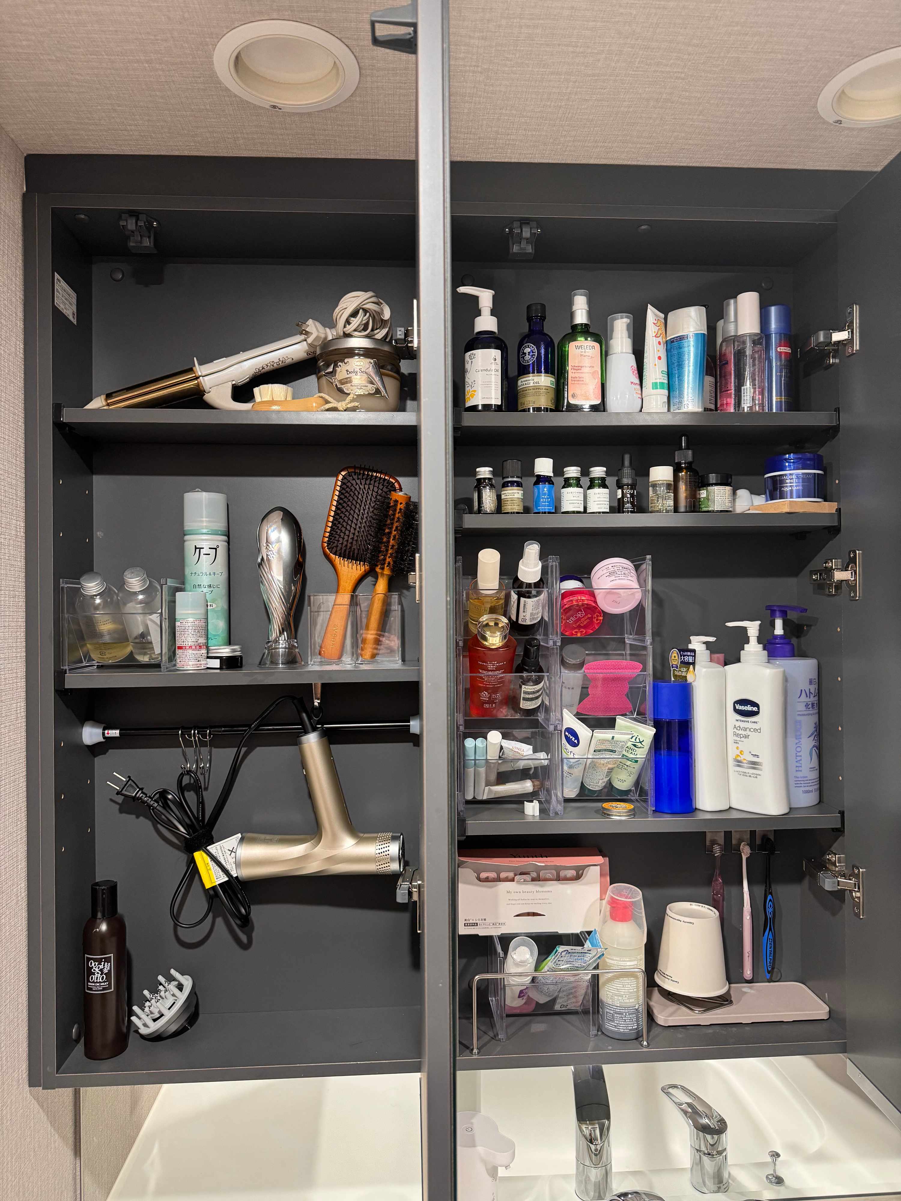 ドライヤー収納は、つっぱり棒が楽ちん