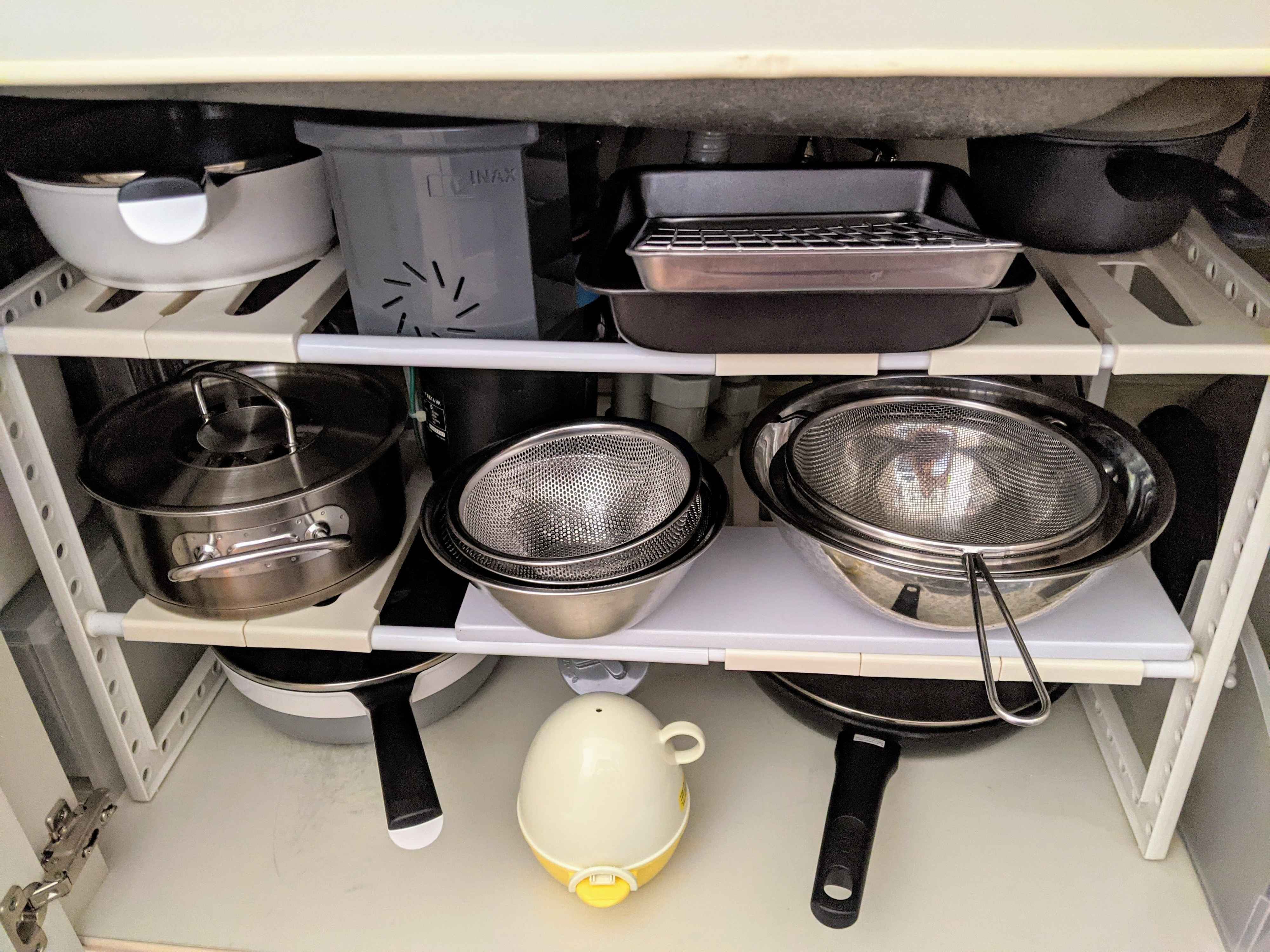 私の場合、左手で扉を開け、右手で鍋を取るのが取りやすいので、よく使う鍋は左側に置いています。