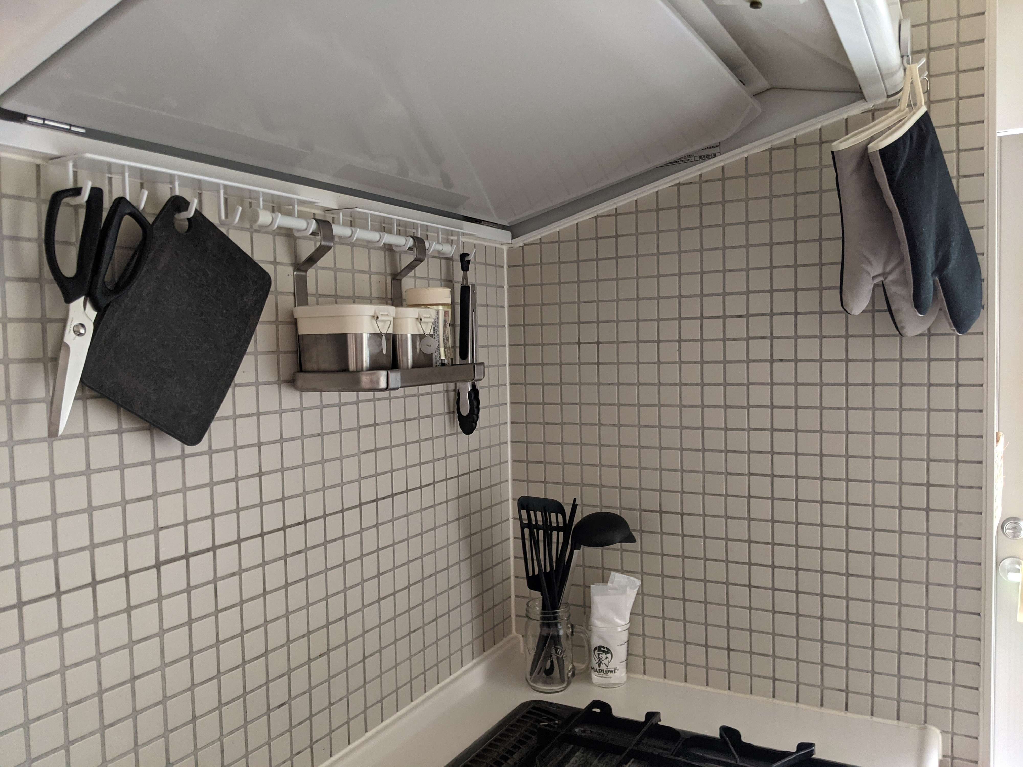 以前は頻繁に使うラップをガスコンロの奥にある収納棚に置いていたのですが、実際使う場所はガスコンロとシンクの間にある作業スペース。