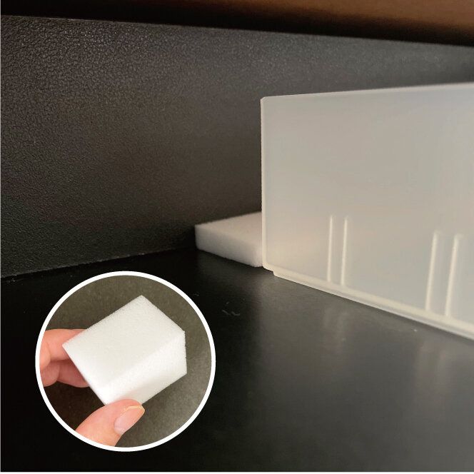 他にもメラミンスポンジは引き出しの奥行き調節にも役立ちます。