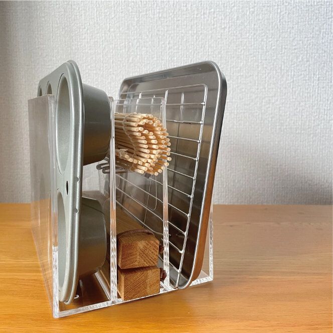 我が家では鍋敷と巻きすを収納していますが、デッドスペースもなくなりモノも重ならず収納量を増やせました。